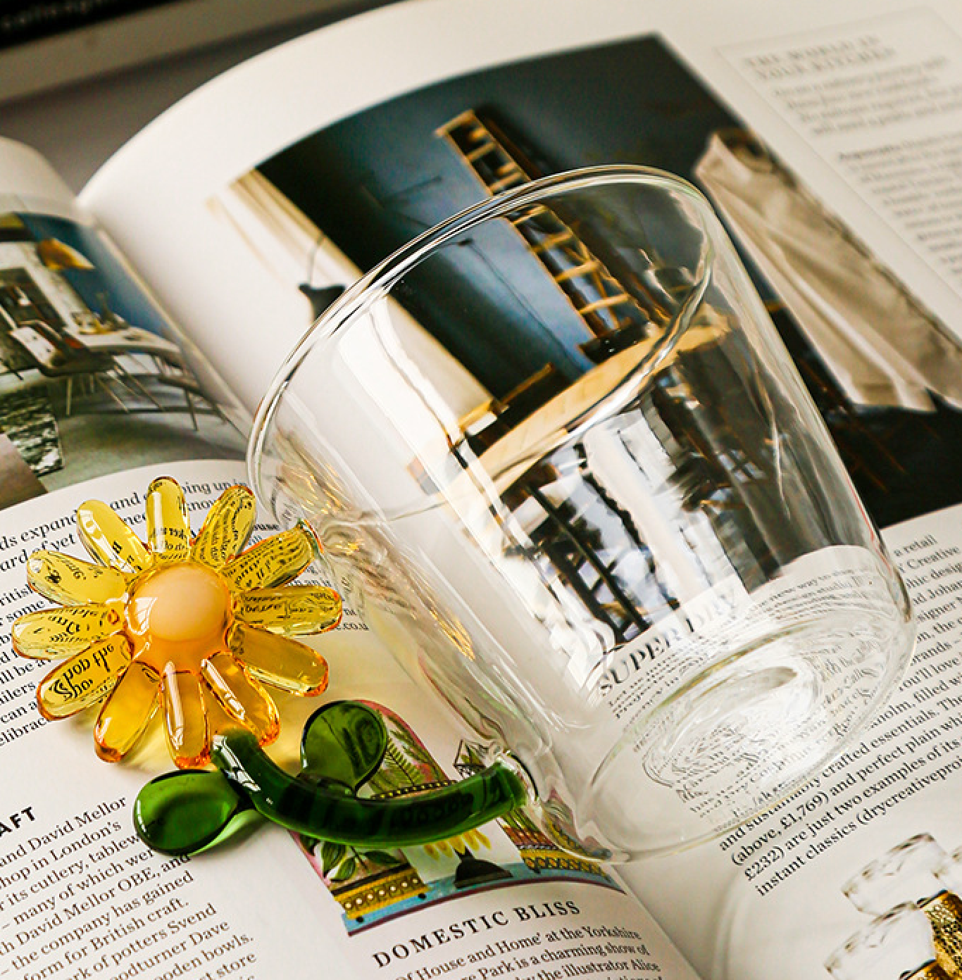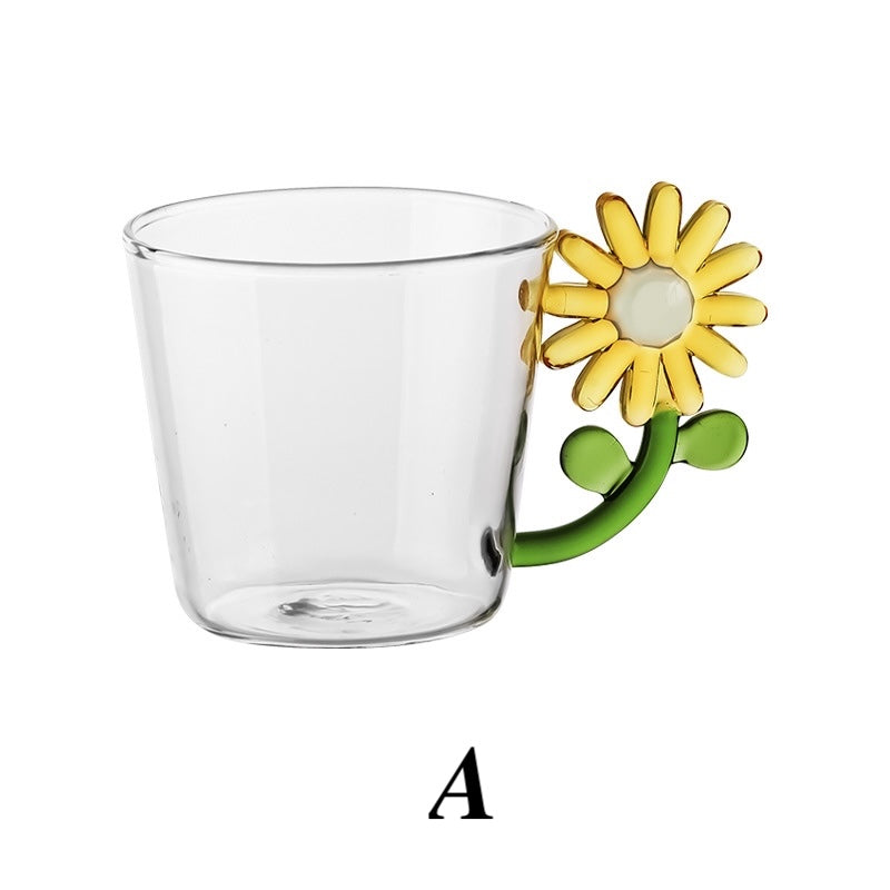 250ml Borosilicate Transparent Flower Handle Glass Cup